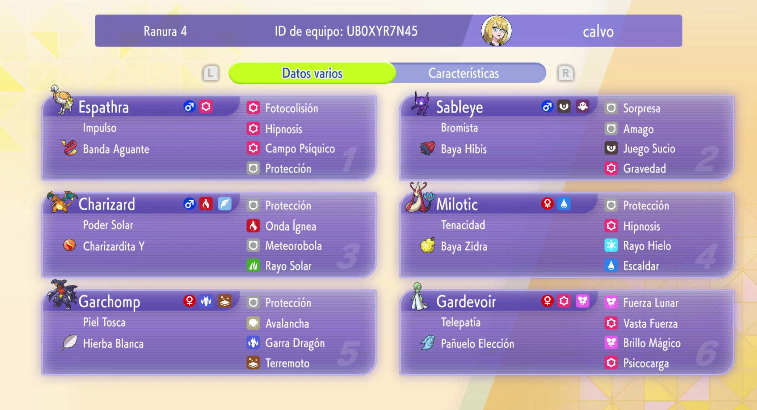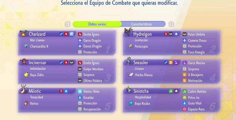 Ten en cuenta que para usar un equipo debes tener en tu juego los pokémon que lo componen